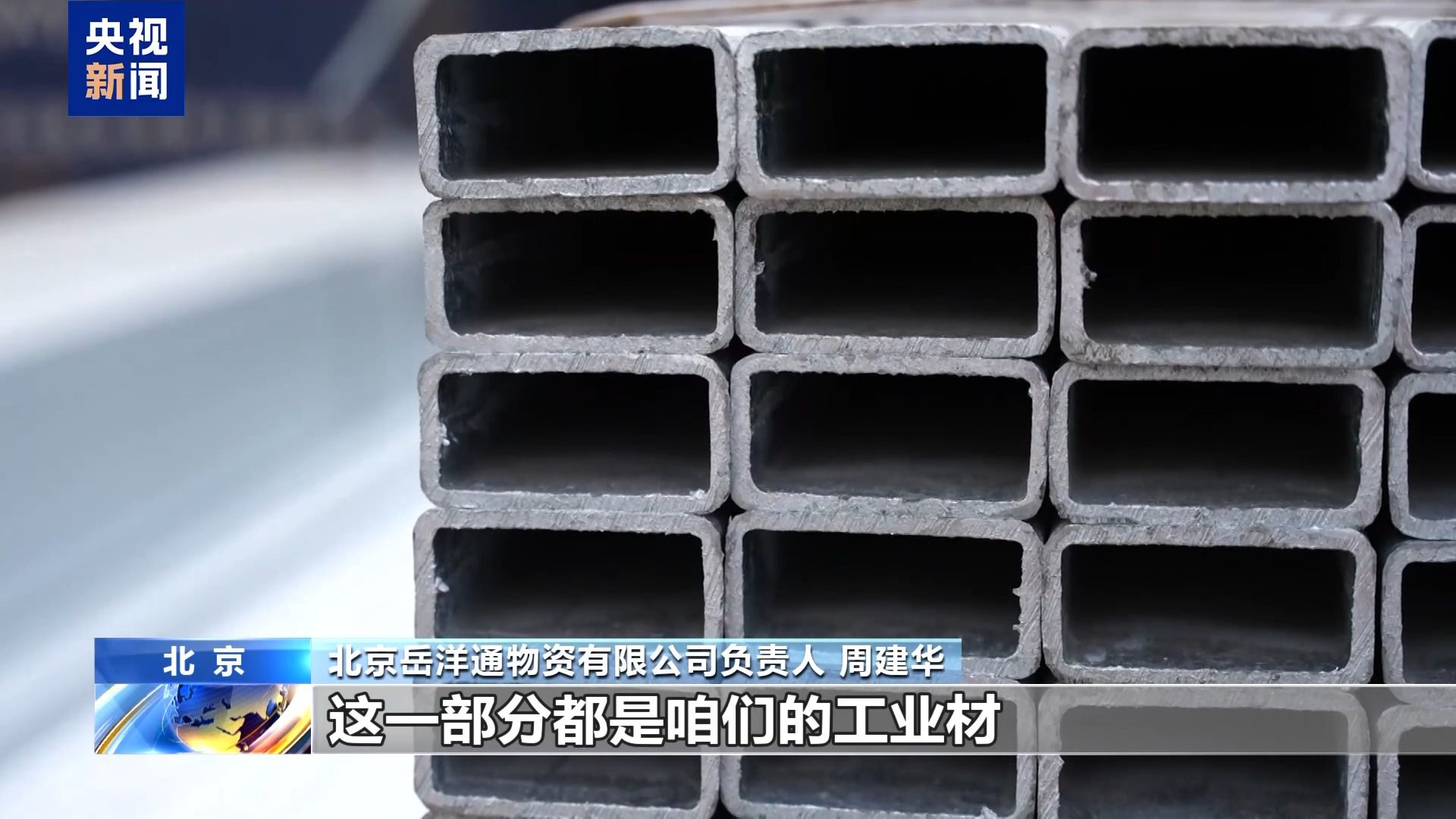在北京的這家鋼貿(mào)企業(yè),記者看到前來提貨的卡車排成了隊。負責人告訴記者,眼前這些正在裝車的長方形的鋼管就是常見的工業(yè)用鋼材。
