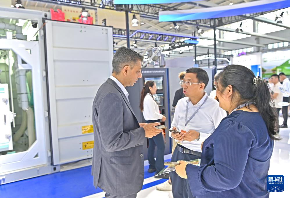 7月12日,國(guó)外客商在沈陽(yáng)國(guó)際展覽中心了解糧食加工機(jī)械。新華社記者 周華 攝