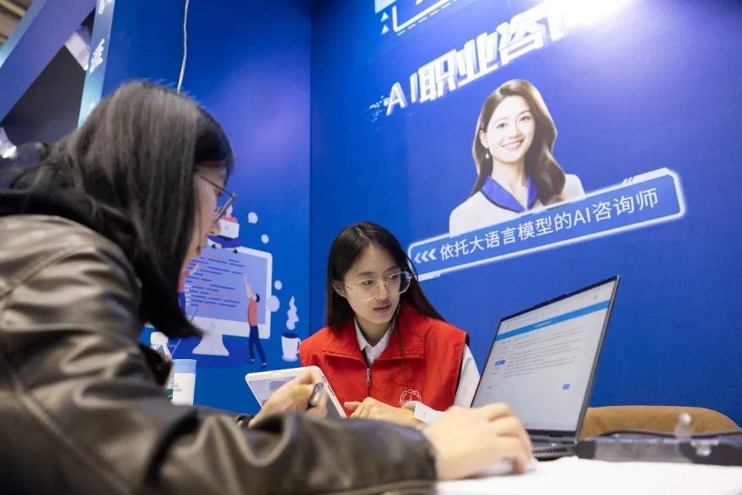 3月26日,在哈爾濱工業(yè)大學一校區(qū)體育館內(nèi),學生在體驗AI職業(yè)咨詢。張濤 攝