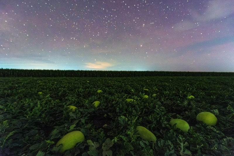 7月23日在黑龍江省佳木斯市富錦市上街基鎮(zhèn)拍攝的西瓜與北斗七星相映成趣。