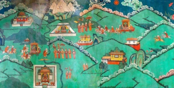 這幅布達(dá)拉宮壁畫(huà)講述了公元7世紀(jì),吐蕃贊普松贊干布統(tǒng)一青藏高原,迎娶唐文成公主,“漢藏一家親”的傳世佳話(huà)(資料照片)。新華社發(fā)