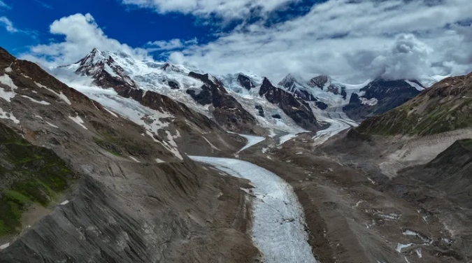 空中俯瞰祥格拉冰川(無(wú)人機(jī)照片)。新華社記者 晉美多吉 攝