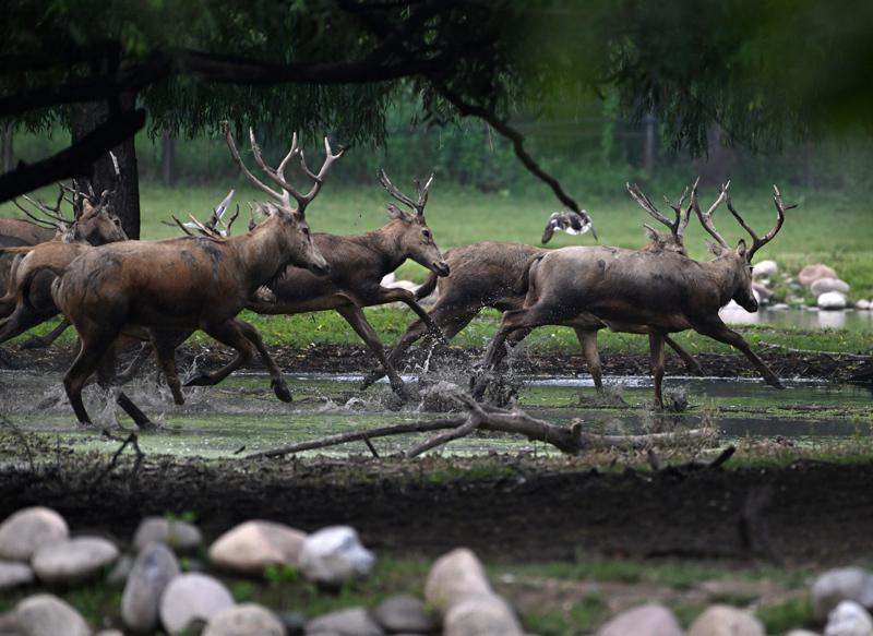8月18日在北京麋鹿苑拍攝的麋鹿。
