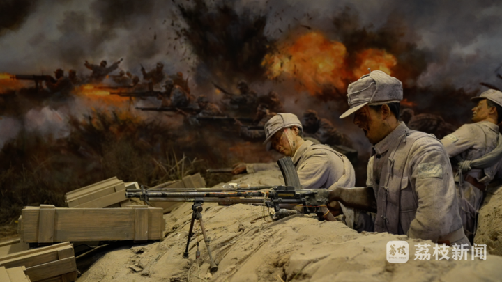全連滿打滿算僅82人,裝備只有一挺重機(jī)槍、三挺輕機(jī)槍和少量槍榴彈。而進(jìn)犯的日偽軍上千人,不僅兵力懸殊,更配有野戰(zhàn)炮、重機(jī)槍等精良武器。眼看劉老莊的群眾尚未撤離,為掩護(hù)百姓和淮海區(qū)黨政機(jī)關(guān)安全轉(zhuǎn)移,4連官兵在連長(zhǎng)白思才、指導(dǎo)員李云鵬的率領(lǐng)下,毅然選擇留下來奮勇阻擊。
