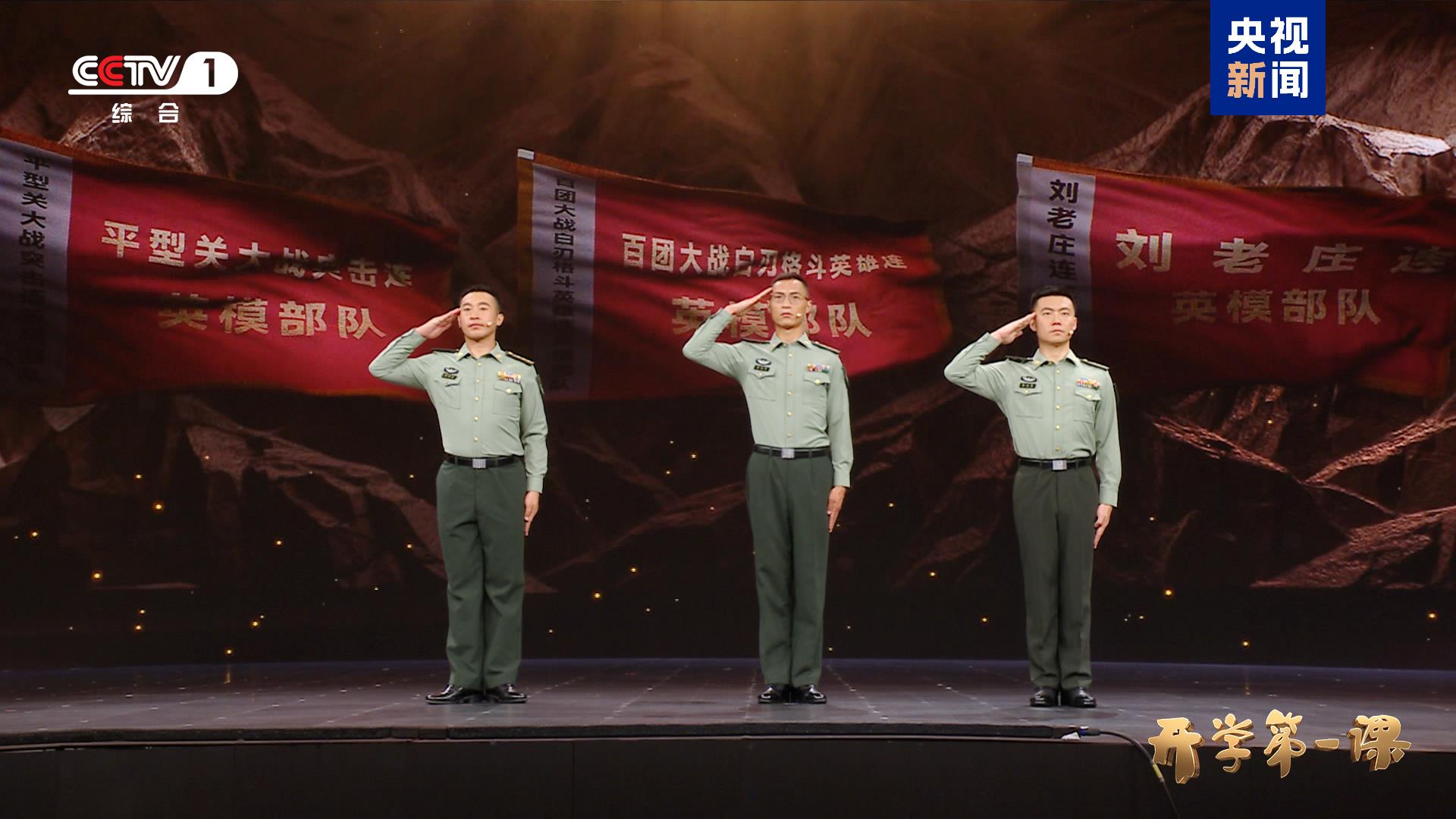 節(jié)目中,三面來自抗戰(zhàn)英雄連隊的戰(zhàn)旗首次同臺亮相,三支英雄連隊的代表——“平型關大戰(zhàn)突擊連”政治指導員栗新朝、“白刃格斗英雄連”政治指導員徐尤秀、“劉老莊連”政治指導員戴天驕將現場講述平型關大捷、百團大戰(zhàn)、劉老莊戰(zhàn)斗等著名戰(zhàn)役中發(fā)生的動人故事,展現英雄連隊不畏強暴、血戰(zhàn)到底的英雄氣概與精神傳承。