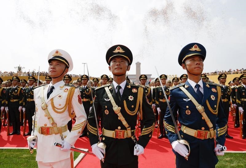 9月3日,紀(jì)念中國(guó)人民抗日戰(zhàn)爭(zhēng)暨世界反法西斯戰(zhàn)爭(zhēng)勝利80周年大會(huì)在北京隆重舉行。這是國(guó)旗護(hù)衛(wèi)隊(duì)在天安門(mén)廣場(chǎng)列隊(duì)。