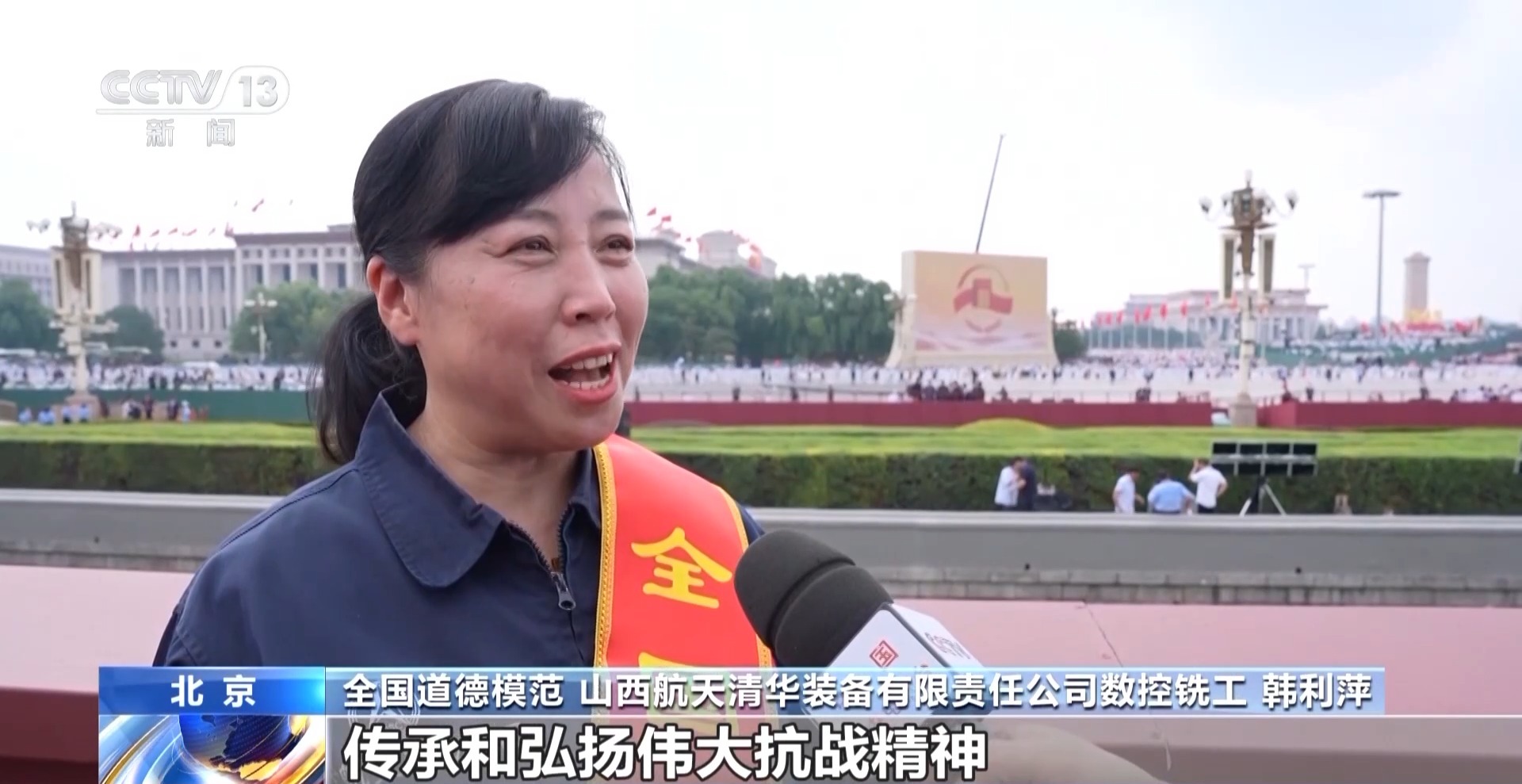 全國(guó)道德模范、山西航天清華裝備有限責(zé)任公司數(shù)控銑工 韓利萍:傳承和弘揚(yáng)偉大抗戰(zhàn)精神,這句話對(duì)我的觸動(dòng)非常深。我要把忠誠(chéng)愛國(guó)、精益求精、堅(jiān)韌不拔的精神融入日常工作中,把每一個(gè)產(chǎn)品都加工成精品,為航天強(qiáng)國(guó)貢獻(xiàn)力量
