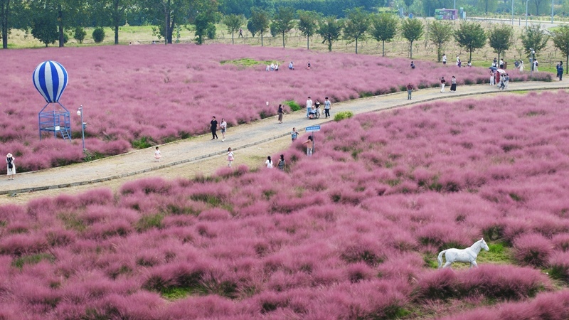 10月5日,人們?cè)谀暇┓蜃訌R景區(qū)游玩(無人機(jī)照片)。