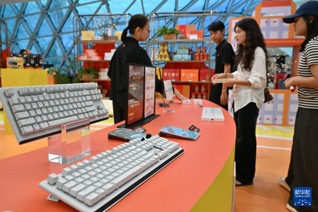 11月9日,顧客在三亞國際免稅城選購數(shù)碼配件。這是新增免稅品類。