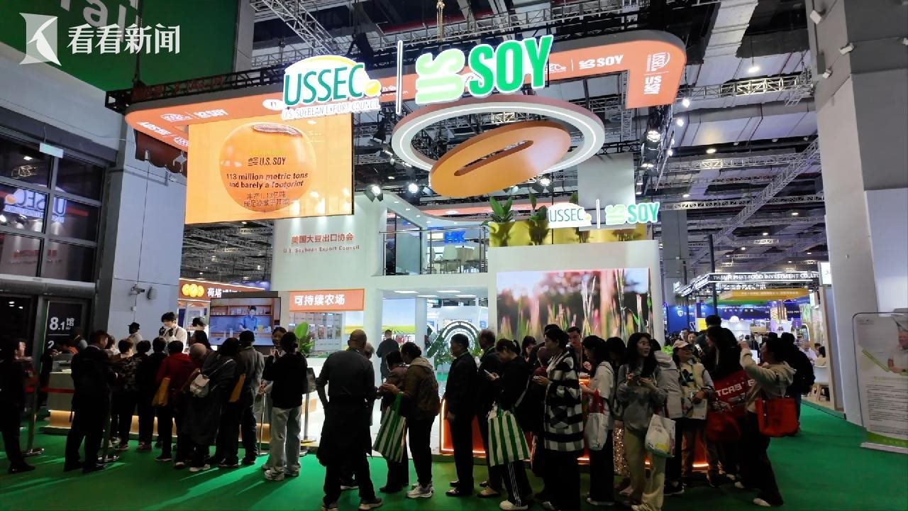 蘇健說的不是客套話。進博會一開始,他的行程就滿滿當當——開館剪彩、客商對接、媒體專訪。他的身后,是一群帶著中文名片、中文宣傳資料的豆農(nóng),賣力帶貨。“正如大家在現(xiàn)場看到的,我們可以把大豆加工成大豆油,這種油品更適合高溫烹飪?!泵绹罐r(nóng)蓋思凱說。