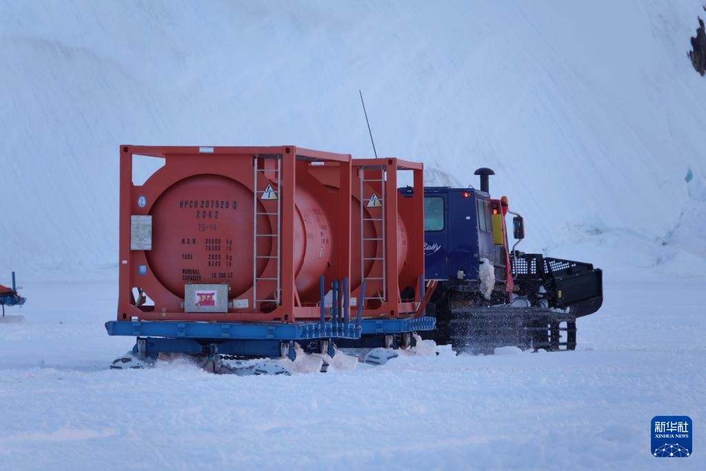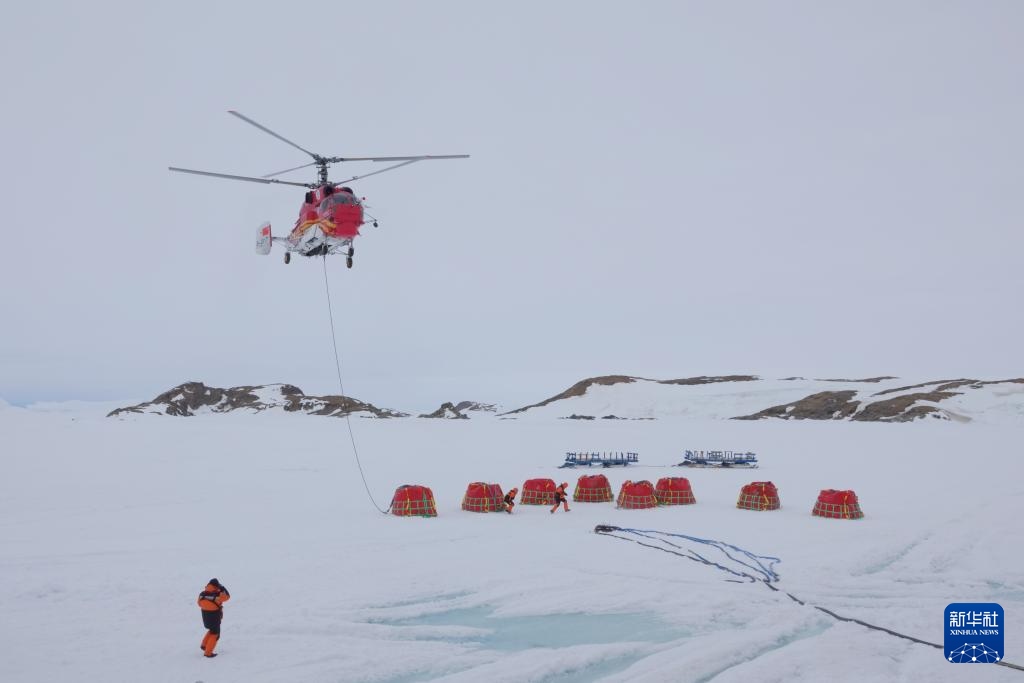 據(jù)悉,“雪龍2”號正采取“白天空吊、夜晚冰運(yùn)”的節(jié)奏開展物資和燃油卸運(yùn),白天利用直升機(jī)吊掛油囊,夜間趁低溫海冰承載力較好時(shí)開展冰面車輛雪橇運(yùn)輸。