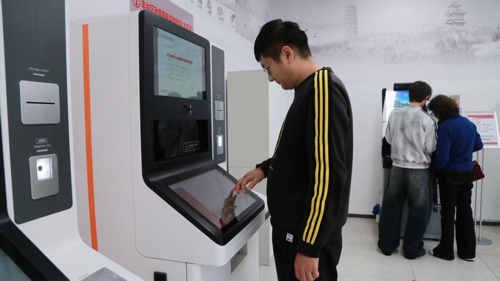 圖為市民在豐臺區(qū)政務(wù)服務(wù)中心“豐禾號”自助機使用“豐小政”辦理業(yè)務(wù)。(受訪者供圖)