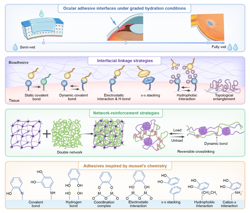 研究團(tuán)隊介紹,眼科粘合材料分為眼表粘合和眼底粘合兩大類,針對性解決不同眼部區(qū)域的治療需求。對于角膜等眼表疾病,“生物膠水”已展現(xiàn)出亮眼潛力,能實(shí)現(xiàn)無縫線角膜移植,填充修復(fù)大范圍角膜缺損,即便在濕潤、滲血的復(fù)雜創(chuàng)面上也能即時封閉,可大幅拓展眼表修復(fù)的適用場景,提升治療效果。