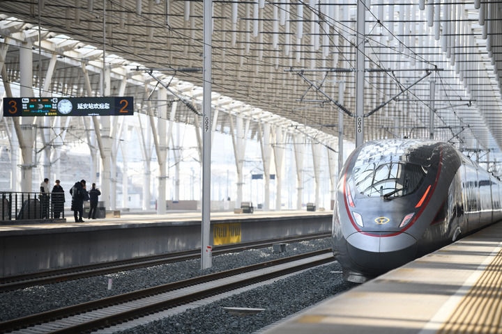 冬日暖陽,灑向延安火車站的站臺。26日10時(shí)許,“復(fù)興號”智能動(dòng)車組列車駛出站臺,向著關(guān)中平原飛馳而去,縈繞在老區(qū)幾代人心中的高鐵夢照進(jìn)現(xiàn)實(shí)。
