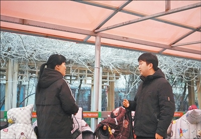 1月5日,河北省曲陽(yáng)縣永寧社區(qū)永寧花園小區(qū)內(nèi),社區(qū)干部(右)向居民了解車棚使用情況。受訪者供圖