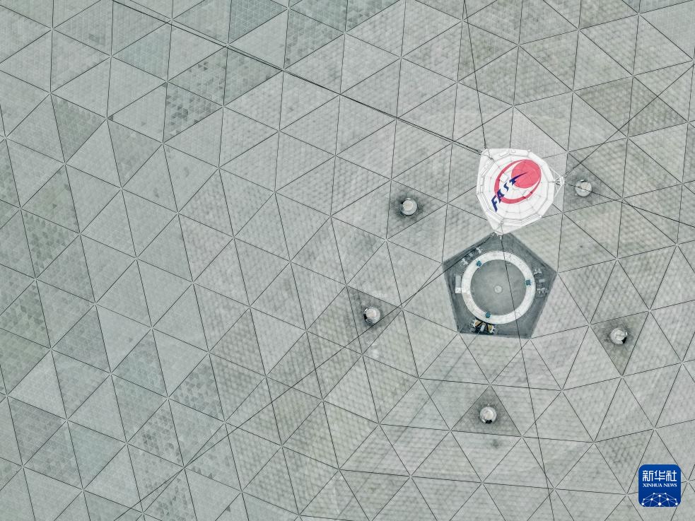 1月16日拍攝的“中國(guó)天眼”(無人機(jī)照片,維護(hù)保養(yǎng)期間拍攝)。