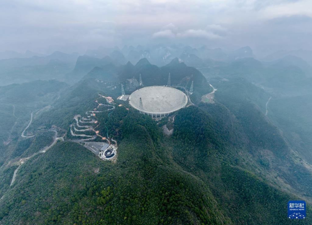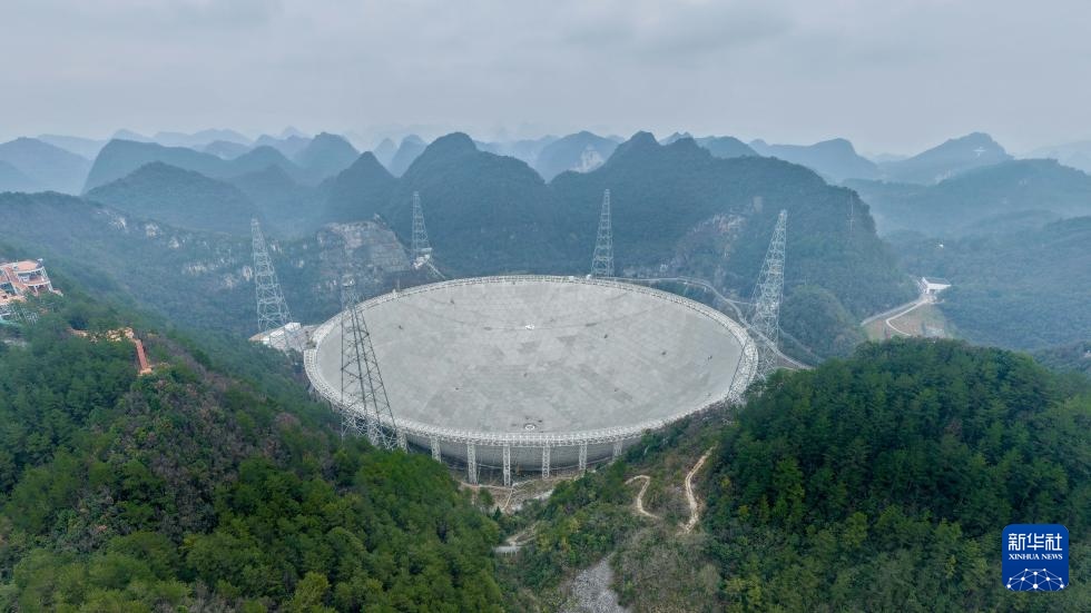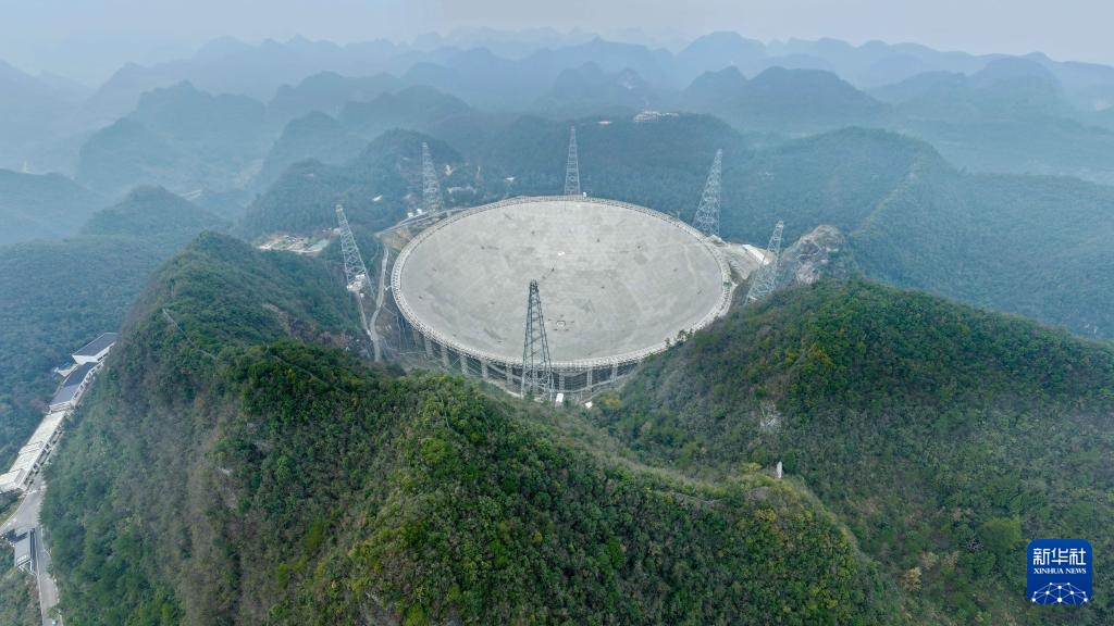 1月16日拍攝的“中國(guó)天眼”(無人機(jī)全景照片,維護(hù)保養(yǎng)期間拍攝)。