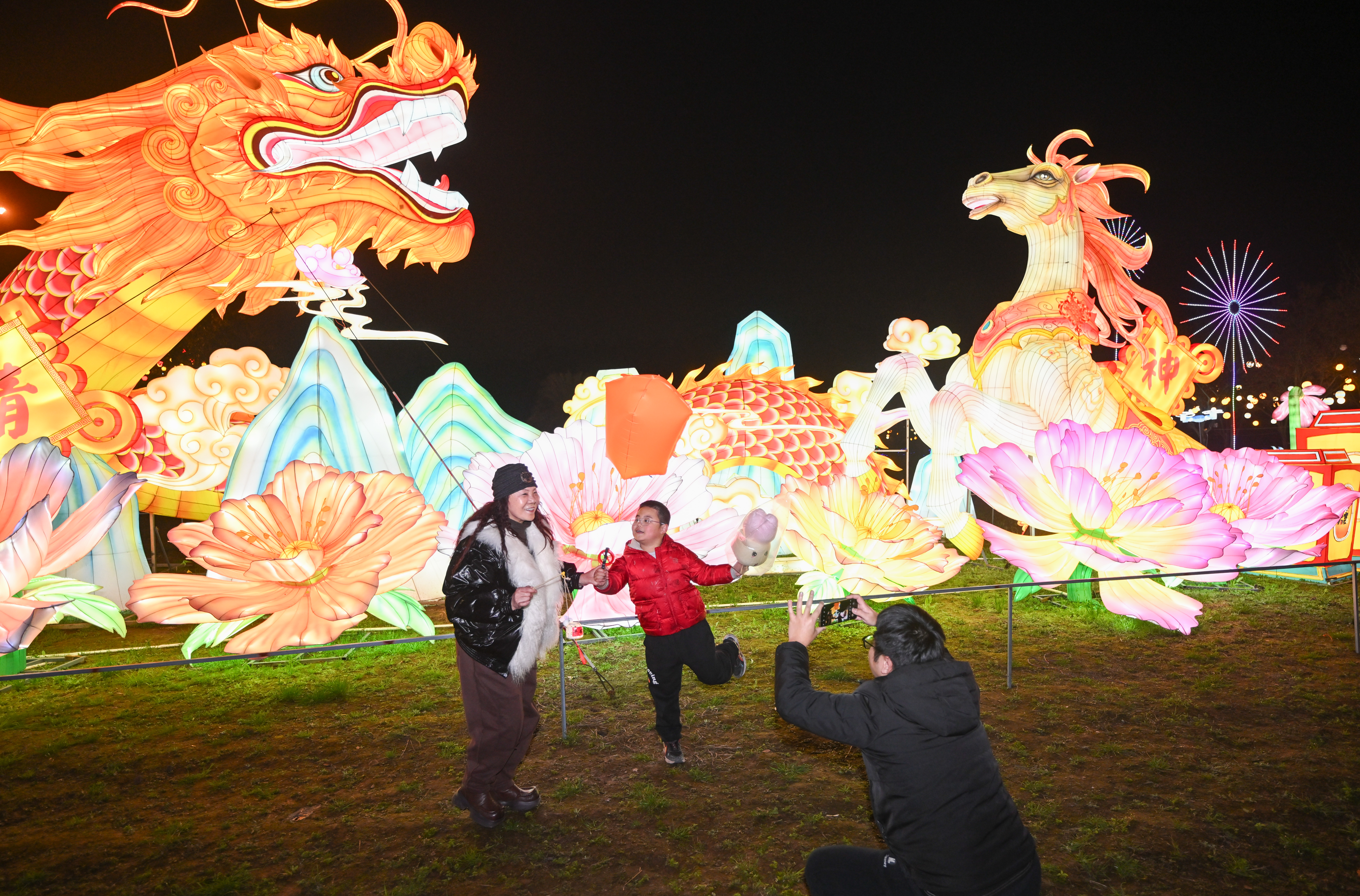 ▲銅梁第十二屆龍燈藝術(shù)節(jié)現(xiàn)場,市民與《龍馬精神》組燈合影。記者 謝智強(qiáng) 攝/視覺重慶