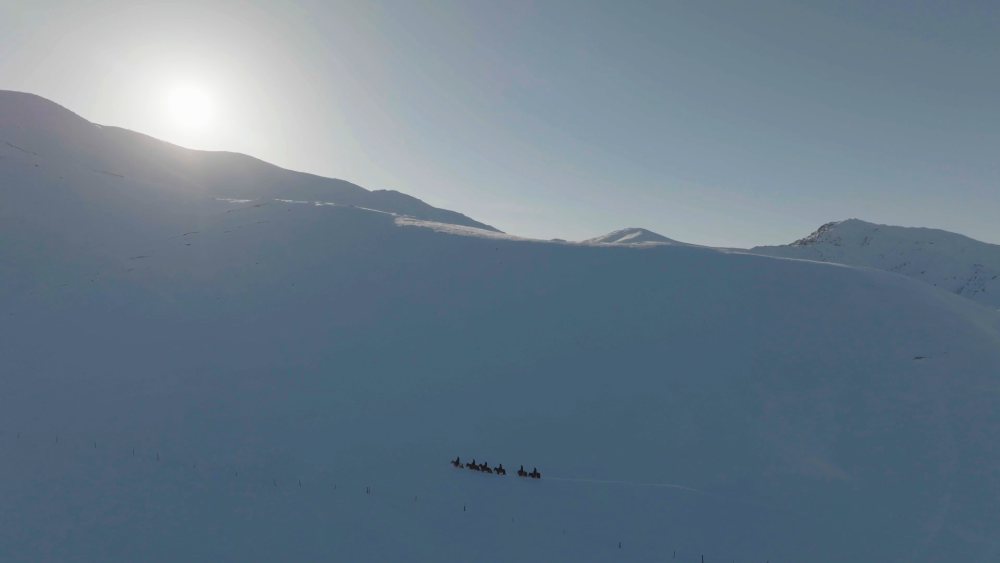 在如刀的風中和遼闊的雪原,一群年輕的騎士策馬前行,即使臉被風吹紅,手腳凍開裂,也沒有停下腳步。