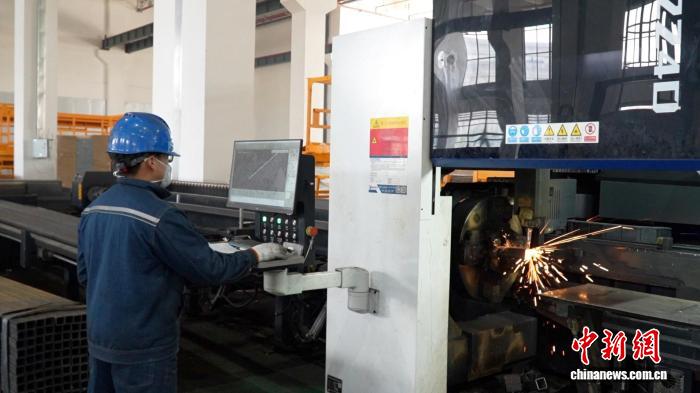 車間里,智能化自動激光切割機精準作業(yè),僅用20分鐘就完成了一塊10毫米厚、2平方米鋼材的鉆孔工序,加工效率是傳統(tǒng)人工操作的10倍。