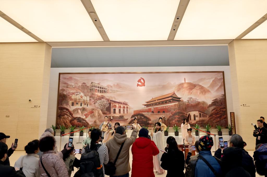 2月17日,參觀者在中共一大紀念館內(nèi)觀看表演。新華社記者 方喆 攝