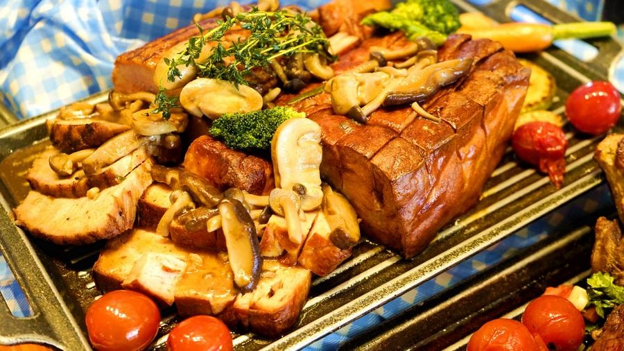 各類香腸瞬間把食客帶入德國的美食世界,德國盛產(chǎn)香腸,其肉質(zhì)緊實,肉汁豐盈。獨特的風(fēng)味讓食客流連忘返。現(xiàn)場歡快的音樂烘托著氣氛,法蘭克福香腸、蝸牛豬肉腸、圖林根香腸、慕尼黑白腸、小牛肉腸,各式香腸在食臺上翻滾。清爽的沙拉與制作工藝復(fù)雜的冷切肉,搭配各種小料一起食用,滿滿德國風(fēng)味。