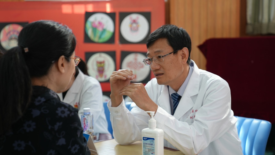 義診現(xiàn)場,前來咨詢就診的女教職工朋友有序候診,其中不少老師拿著體檢報(bào)告和既往病歷來到專家臺前進(jìn)行詳細(xì)咨詢。此次義診,內(nèi)蒙古醫(yī)科大學(xué)附屬醫(yī)院醫(yī)療烏蘭牧騎派出了神經(jīng)內(nèi)科、消化內(nèi)科、心血管內(nèi)科、骨科、甲乳外科、泌尿外科、胸外科、超聲科、中醫(yī)科、婦產(chǎn)生殖醫(yī)學(xué)科、康復(fù)醫(yī)學(xué)科等11個專業(yè)的19位專家及醫(yī)護(hù)骨干,為廣大園丁提供查體、疾病咨詢和健康科普服務(wù)及測量血壓、把脈問診、超聲檢查、心電圖檢查、早期胃癌篩查、早期肝癌篩查等檢測項(xiàng)目。附院專家耐心細(xì)致地詢問病史、解答疑問,并根據(jù)不同的病癥和個體差異給予個性化的診療建議。同時(shí)對職業(yè)女性常見的消化系統(tǒng)疾病、甲狀腺疾病、乳腺疾病、婦科疾病、腰椎間盤突出等疾病開展了專業(yè)、細(xì)致、通俗的健康科普。