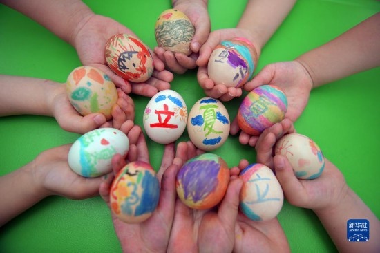 5月5日,河南省濟(jì)源市第一幼兒園的孩子體驗(yàn)立夏習(xí)俗。