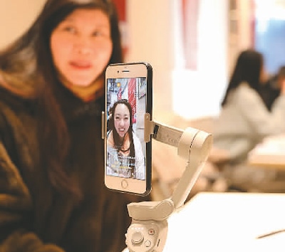 4月19日,主播在甘肅省女大學(xué)生就業(yè)專場(chǎng)招聘活動(dòng)現(xiàn)場(chǎng)進(jìn)行直播帶崗。新華社記者 范培珅攝
