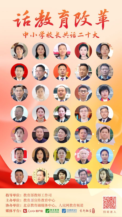 5月12日起,“人民網(wǎng)+”客戶端推出“中小學(xué)校長(zhǎng)共話二十大”專題節(jié)目,每日11:00上新,圍繞黨的領(lǐng)導(dǎo)、鑄魂育人、教育改革、教育公平、強(qiáng)師興校等話題述成績(jī)、言感悟、談現(xiàn)狀、話未來(lái),切實(shí)把黨的二十大精神轉(zhuǎn)化為辦學(xué)治校、教書育人的實(shí)際行動(dòng)。讓我們一起傾聽全國(guó)百位中小學(xué)校長(zhǎng)共話二十大,共同描繪教育事業(yè)發(fā)展的新藍(lán)圖。
