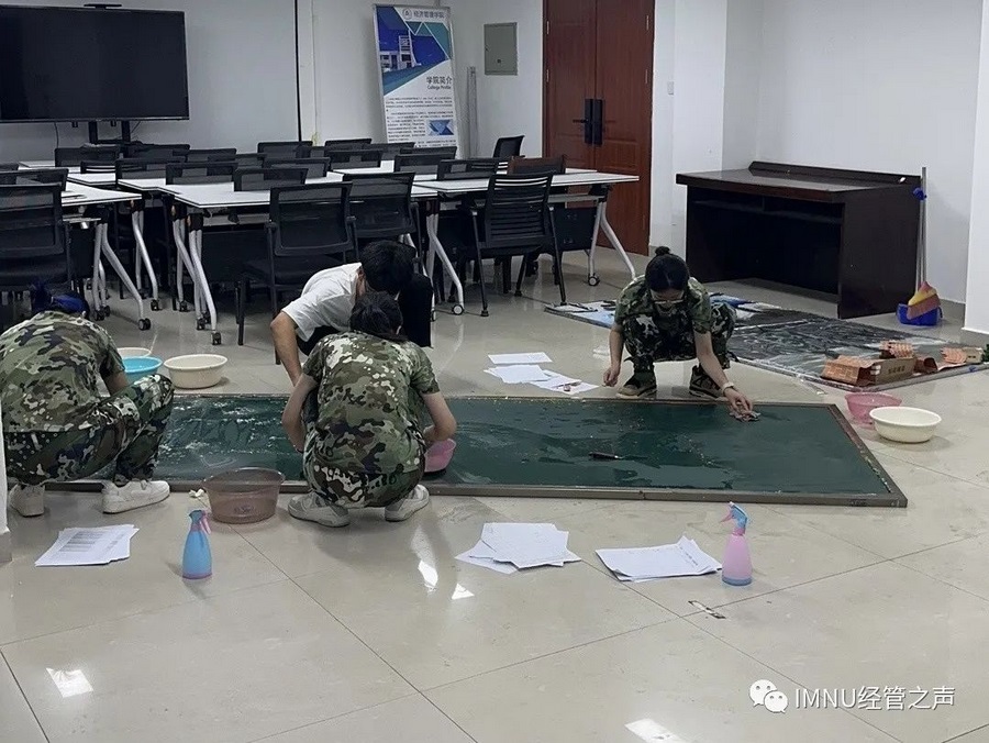 經(jīng)管同學(xué)們以板報(bào)形式展現(xiàn)“經(jīng)邦濟(jì)寰宇,傾世暖春華”主題,表達(dá)了對(duì)老師們的“師恩深似海,桃李滿天下”的說不盡的感念。借此,同學(xué)們對(duì)軍訓(xùn)期間在身后默默奉獻(xiàn)的老師們表達(dá)深切感謝,通過軍訓(xùn)磨煉意志,更好展現(xiàn)經(jīng)管優(yōu)良品格。