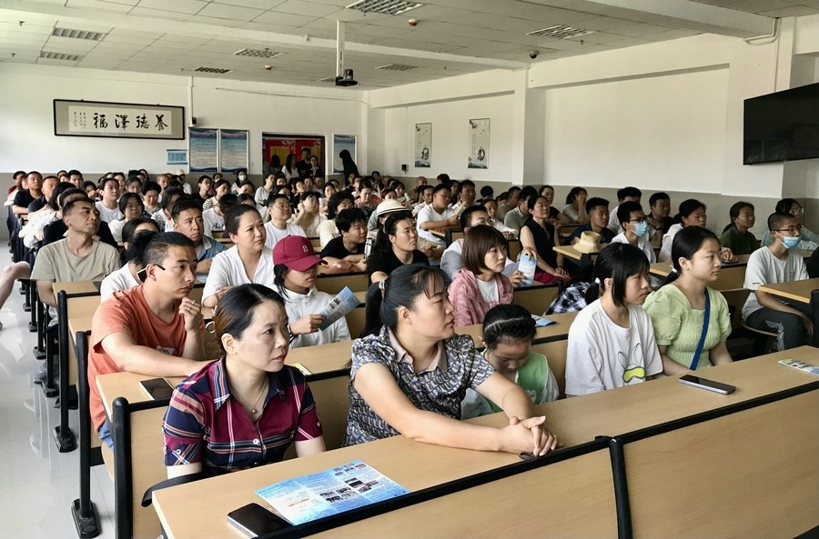 上午8:00,家長(zhǎng)和同學(xué)們陸續(xù)走進(jìn)學(xué)校。截至9:00,學(xué)校3個(gè)報(bào)告廳、教學(xué)樓二樓大廳、家長(zhǎng)接待室、校南門家長(zhǎng)咨詢點(diǎn),共接待家長(zhǎng)超1500人次。