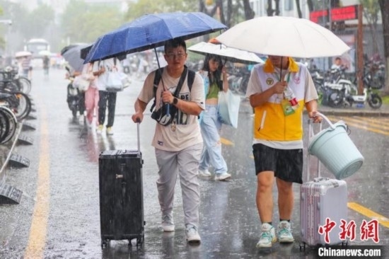 雨中迎學(xué)子。泱波 攝