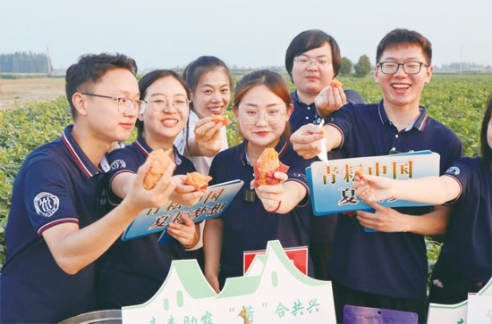 圖為2023年暑期,中國人民大學(xué)博士生服務(wù)團(tuán)在山東菏澤圍繞“人才產(chǎn)業(yè)融合發(fā)展賦能鄉(xiāng)村振興路徑探索”課題進(jìn)行調(diào)研,并開展“青耘中國·夏耘夢(mèng)想”公益助農(nóng)直播活動(dòng)。 中國人民大學(xué)供圖