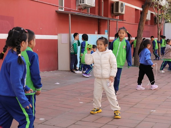 孩子們利用課間時間跳繩。