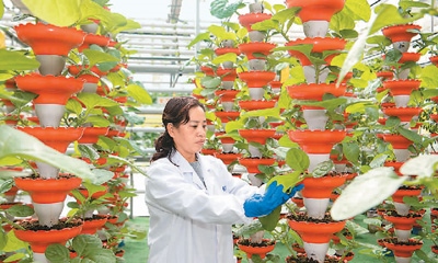 近年來,江蘇省張家港市大力發(fā)展智慧農業(yè),引進高效示范性農業(yè)項目。圖為該市現(xiàn)代農業(yè)科技示范園生產基地的工作人員在作業(yè)中。任廣真攝
