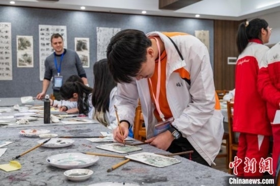 3月19日,香港學(xué)生學(xué)習(xí)國(guó)畫(huà)。唐哲 攝
