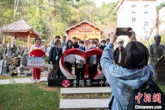 3月19日,部分兩地學(xué)生在貴陽(yáng)市第一中學(xué)合影留念。唐哲 攝