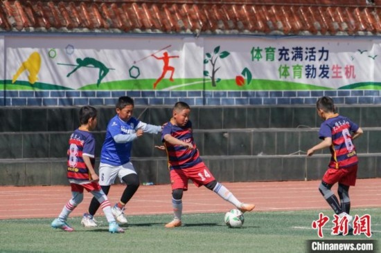 圖為在西寧市大堡子小學(xué),學(xué)生進(jìn)行日常足球訓(xùn)練。馬銘言 攝
