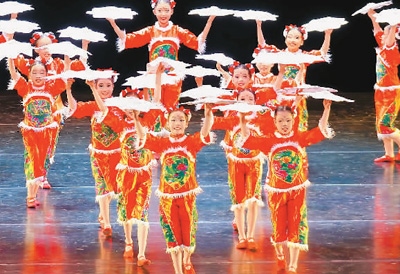 近日,由北京市教委和國家大劇院共同主辦的2024年“美育芳草”青少年藝術(shù)節(jié)在北京藝術(shù)中心拉開帷幕。北京市近2000名中小學(xué)生代表,通過舞臺演出、教學(xué)互動等環(huán)節(jié),與藝術(shù)家們共同呈現(xiàn)了一堂講演結(jié)合、沉浸體驗的生動美育課。圖為北京第二實驗小學(xué)金帆舞蹈團(tuán)在“舞潤韶華”舞蹈專場演出。