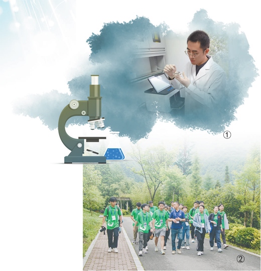 圖①:北京大學基礎醫(yī)學院教師在基礎醫(yī)學博雅學堂班講授測序儀上機流程。楊恩策攝 圖②:浙江大學生命科學學院強基計劃本科生到中國大熊貓保護研究中心開展社會實踐。浙江大學融媒體中心供圖