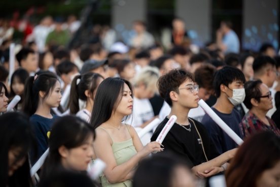 現(xiàn)場,參賽選手青春洋溢的面孔,滿懷對音樂的熱愛激情演唱,觀眾們沉浸在現(xiàn)場美妙的音樂聲中,現(xiàn)場氣氛熱烈。
