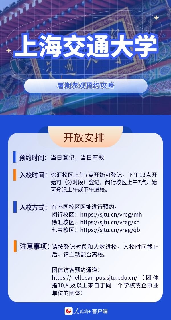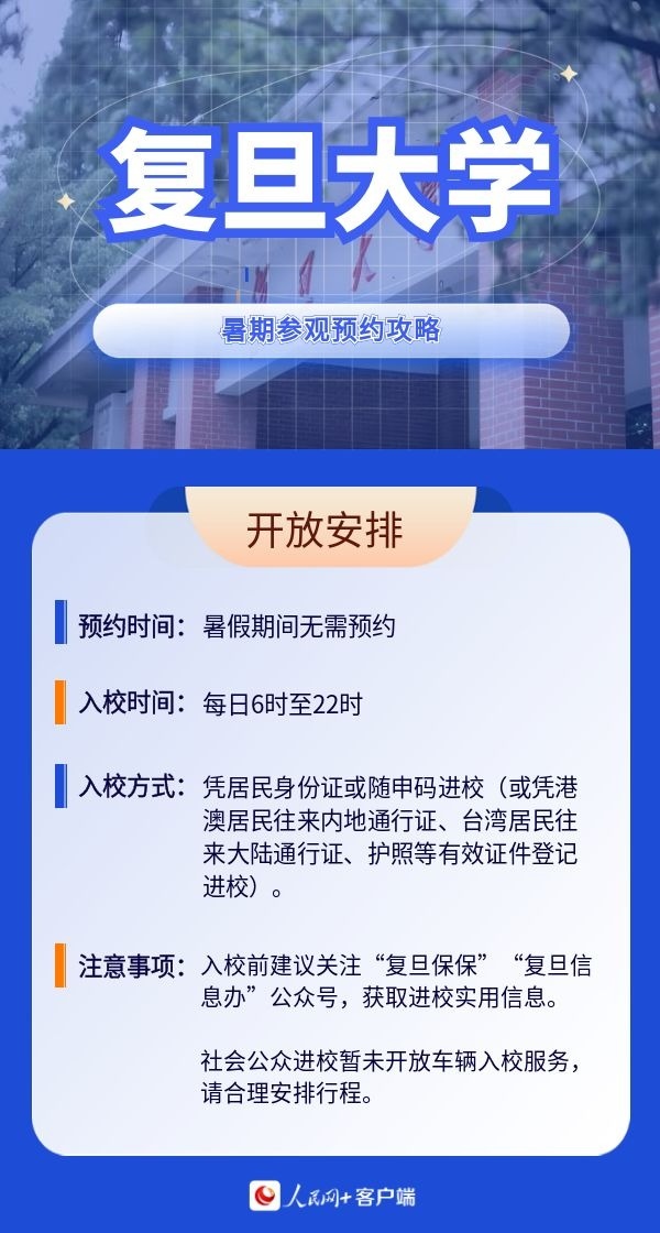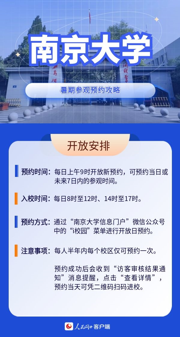 人民網(wǎng)北京7月19日電 暑假來(lái)臨,帶孩子參觀高校,感受學(xué)校人文歷史底蘊(yùn)以及濃厚的學(xué)術(shù)氛圍,已經(jīng)成為很多家長(zhǎng)的選擇。近日,全國(guó)多所高校開放校園,接受公眾參觀。那么如何預(yù)約進(jìn)校?有什么注意事項(xiàng)?人民網(wǎng)特別整理了部分高校的參觀預(yù)約攻略,一起來(lái)看。(郝孟佳、實(shí)習(xí)生趙雪祺)