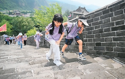 7月24日,2024天津國際少兒藝術(shù)節(jié)“世界兒童登長城”活動(dòng)在天津市薊州區(qū)黃崖關(guān)長城舉行,來自多個(gè)國家和地區(qū)的200余名少年兒童一同攀登長城,在增進(jìn)友誼的同時(shí)實(shí)地感受中華文化的獨(dú)特魅力。圖為來自澳門的小朋友在攀登黃崖關(guān)長城。