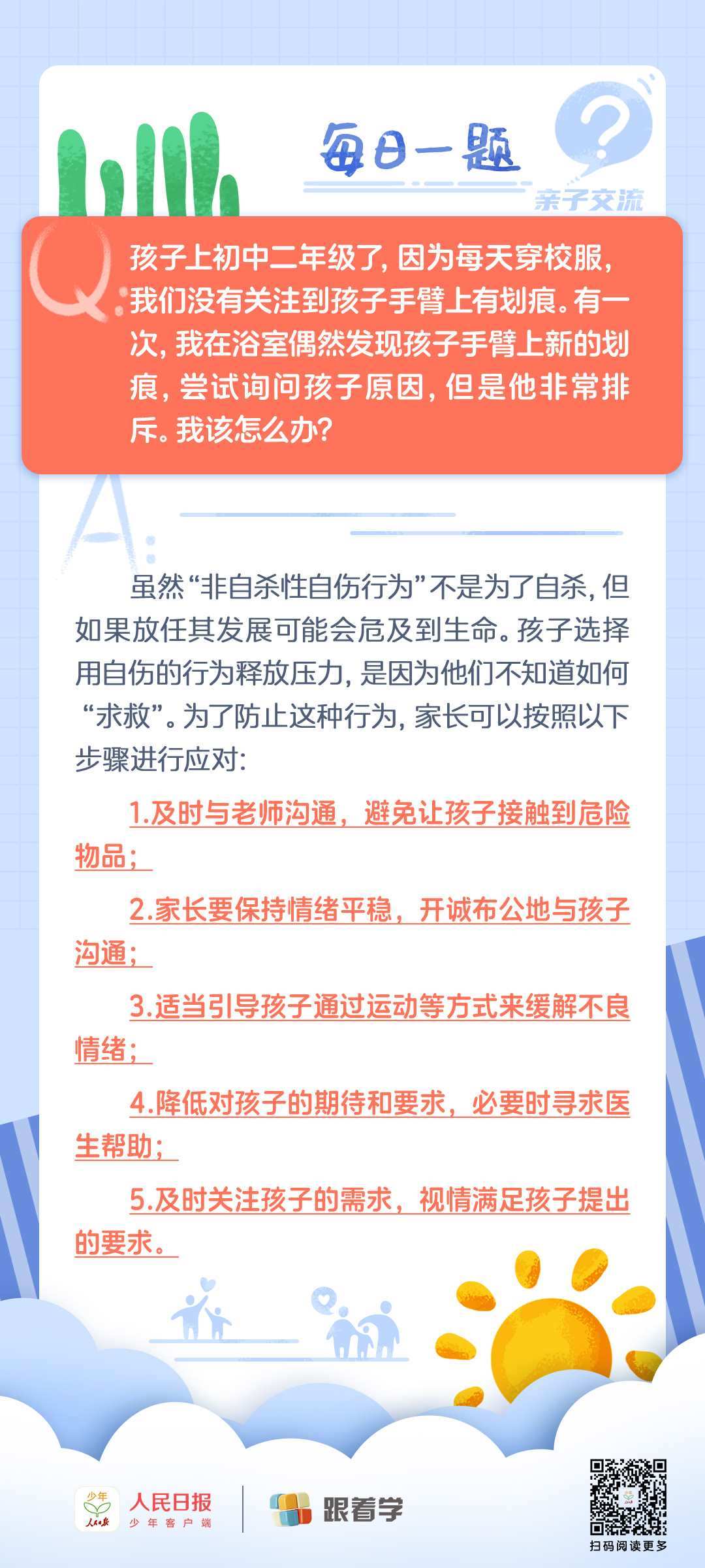 每日一題丨發(fā)現(xiàn)孩子手臂上有劃痕怎么辦?