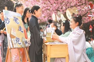 近年來(lái),為更好地傳承詩(shī)歌文化,貴州省黔西市觀音洞鎮(zhèn)沙井小學(xué)每年春天都會(huì)舉辦校園詩(shī)歌文化節(jié)系列活動(dòng),老師帶領(lǐng)學(xué)生身著漢服寫(xiě)詩(shī)歌,朗誦詩(shī)歌,猜詩(shī)歌謎語(yǔ)。圖為學(xué)生在向老師朗誦自己寫(xiě)的詩(shī)歌。