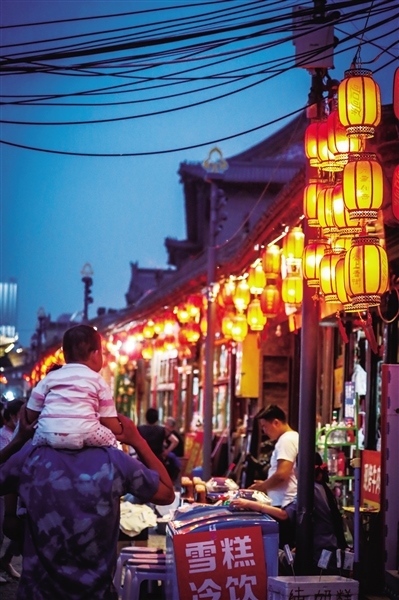 城市的夜色是風景,是心情,是生活,也是商機。夜幕之下,圍繞著大召的街市流光溢彩、人頭攢動,中山路上更是霓虹璀璨、人聲鼎沸,惱包村、萬達花樣年華步行街、中海銀河天街、809美食街、附中東巷……每一個曾經(jīng)深藏在人們心中的夜市繁華街區(qū)又恢復了往日的煙火氣息,讓這座城市增添了更多的活力。