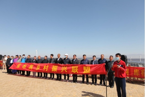 第18屆庫布其植樹節(jié)同步翻開了“鞏固脫貧攻堅成果、推動鄉(xiāng)村振興發(fā)展”的新篇章。在鄂爾多斯、杭錦旗各級黨委政府的領導下,億利集團攜手鄂爾多斯市50多家中小企業(yè)、杭錦旗工商聯(lián)、國家稅務總局杭錦旗稅務局和相關的企業(yè)、公益機構和社會愛心人士,聯(lián)合庫布其沙區(qū)的杭錦淖爾村、刀圖嘎查、沙日召嘎查、圖古日格嘎查、白音補拉嘎查、查干布拉嘎查、格更召嘎查,成立庫布其鄉(xiāng)村振興聯(lián)盟(以下簡稱“聯(lián)盟”),活動現(xiàn)場宣讀了《庫布其鄉(xiāng)村振興聯(lián)盟宣言》。聯(lián)盟將致力于重點推進分布式光伏發(fā)電項目建設,打造黃河文化、沙漠文化、民俗文化相結合的文化旅游村,進一步發(fā)掘古如歌文化,建設好沙漠綠色生態(tài)公園,高質(zhì)量推動板下現(xiàn)代農(nóng)牧產(chǎn)業(yè)發(fā)展,同時依托億利在庫布其打造起來的一二三產(chǎn)業(yè)融合發(fā)展的產(chǎn)業(yè)平臺,切實推動庫布其周邊村嘎查鄉(xiāng)村振興。國家稅務總局杭錦旗稅務局在活動現(xiàn)場宣傳了稅務支持服務營商環(huán)境改善、減稅降費、降碳擴綠等惠民惠企政策,營造“稅企村”共同助力黃河流域生態(tài)保護與高質(zhì)量發(fā)展、推動鄉(xiāng)村振興的新格局。