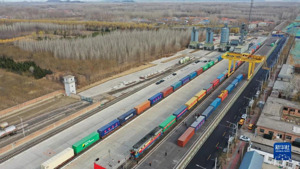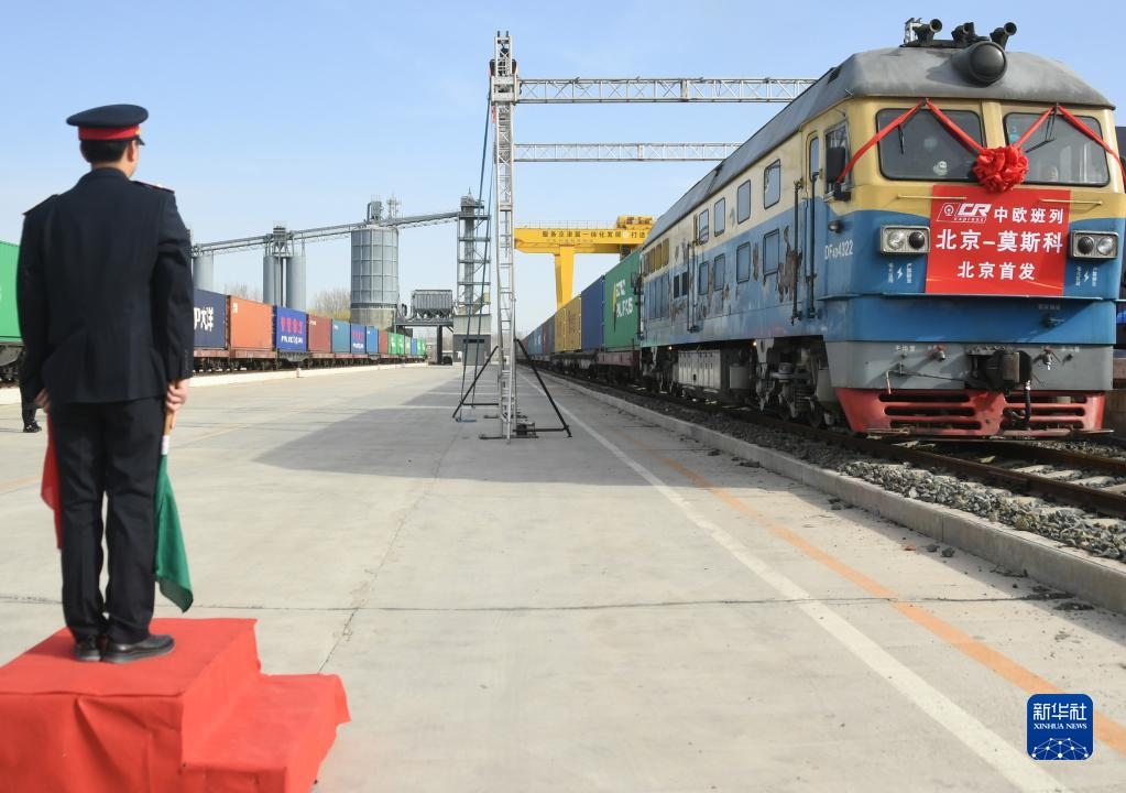 3月16日,在平谷地方鐵路馬坊站,京平綜合物流樞紐中歐班列(北京-莫斯科)發(fā)車。新華社記者 任超 攝