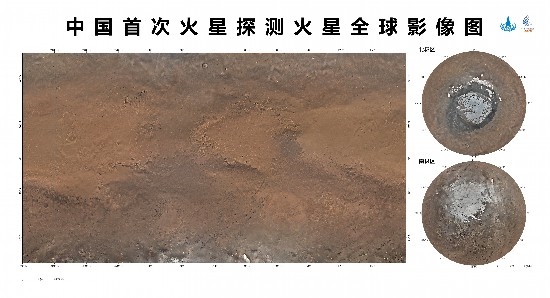 人民網(wǎng)北京4月24日電 (記者趙竹青、王震)記者從國(guó)家航天局獲悉,4月24日,在2023年“中國(guó)航天日”主場(chǎng)活動(dòng)啟動(dòng)儀式上,國(guó)家航天局和中國(guó)科學(xué)院聯(lián)合發(fā)布了中國(guó)首次火星探測(cè)火星全球影像圖。本次發(fā)布的影像圖為彩色,包括按照制圖標(biāo)準(zhǔn)分別制作的火星東西半球正射投影圖、魯賓遜投影圖和墨卡托投影加方位投影圖,空間分辨率為76米,將為開展火星探測(cè)工程和火星科學(xué)研究提供質(zhì)量更好的基礎(chǔ)底圖。天問(wèn)一號(hào)任務(wù)獲取的包括影像圖在內(nèi)的一批科學(xué)探測(cè)數(shù)據(jù),將為人類深入認(rèn)知火星作出中國(guó)貢獻(xiàn)。